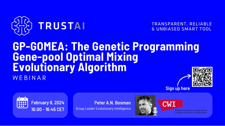 On February 8th, at 15:00 (GMT), there will be a webinar on genetic programming, in the scope of the TRUST-AI project. These artificial intelligence methods are being used to generate models which can be inherently explainable. Peter Bosman leads the Evolutionary Intelligence group of CWI, a top evolutionary computation research group, and in this webinar […]